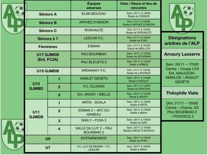 Le planning du 20 et 21 novembre :