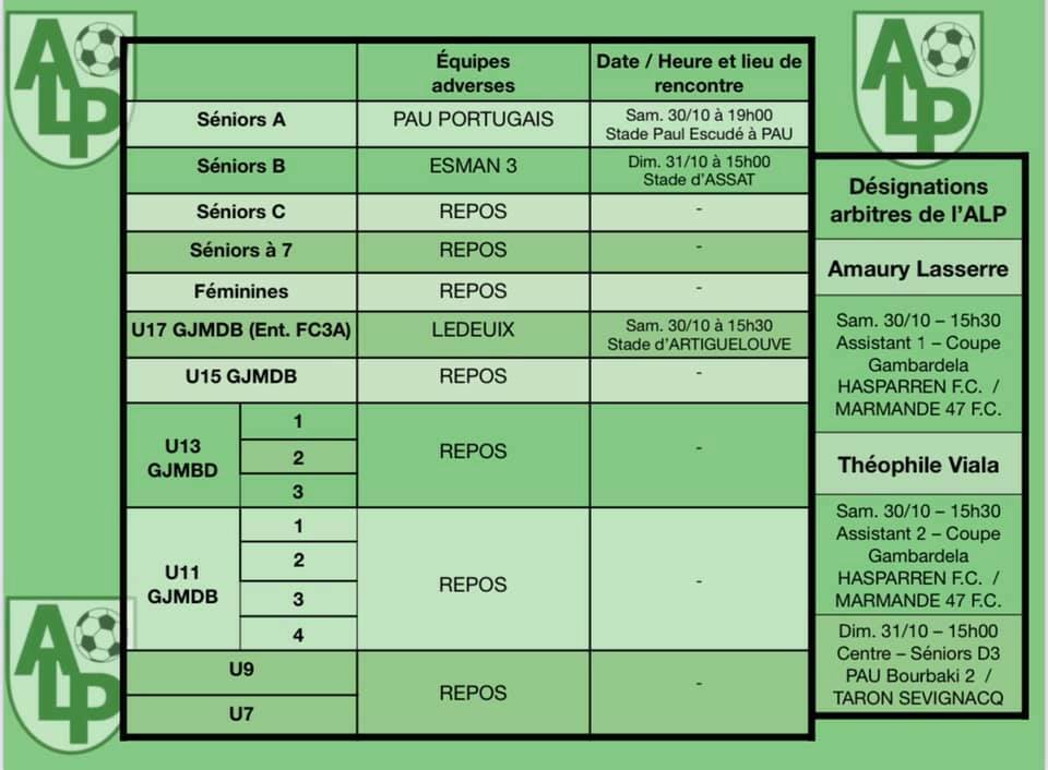 Le planning du 30 et 31 octobre :