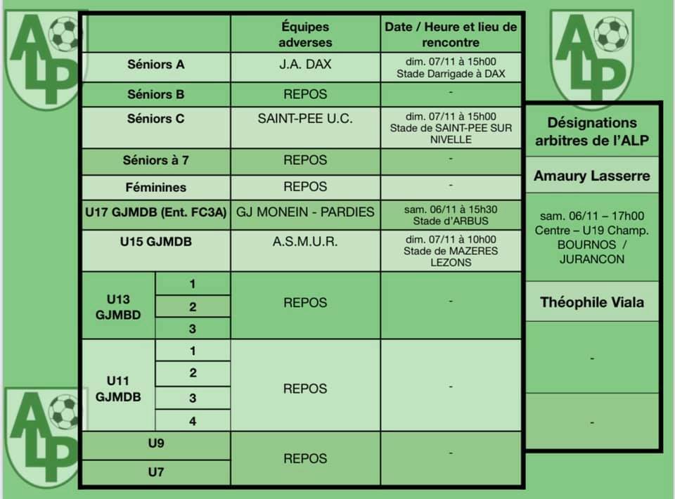 Le planning du 6 et 7 novembre :